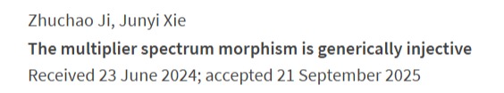近日,西湖大学理论科学研究院助理教授冀诸超与合作者的论文“The multiplier spectrum morphism is generically injective”,和研究院博士后Jeaheang Bang与合作者的论文“Rigidity of Steady Solutions to the Navier-Stokes Equations in High Dimensions and its applications”被国际顶级数学期刊Journal of the European Mathematical Society(JEMS)接收。