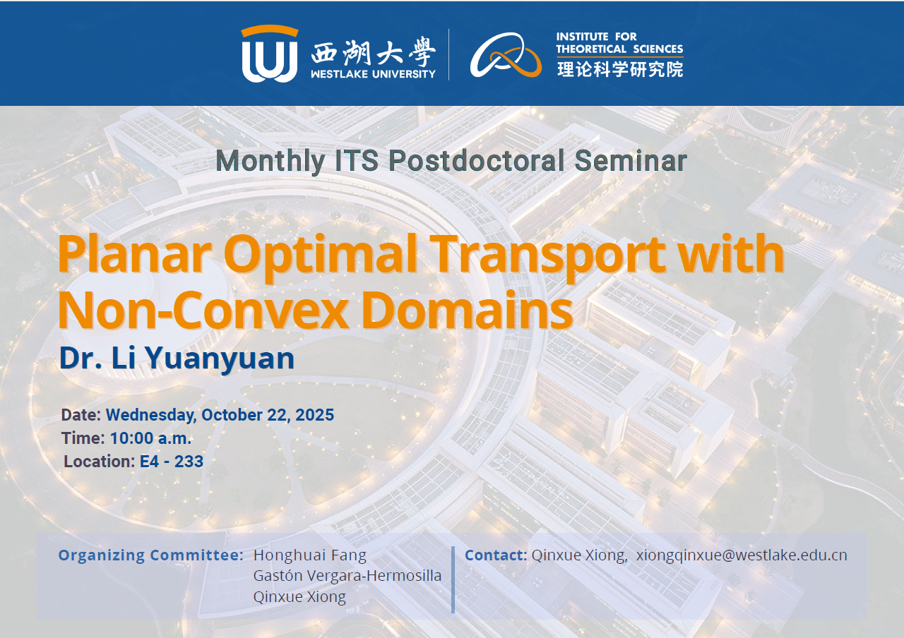 Abstract: We analyze regularity in planar optimal transport. First, we investigate optimal transport problems where the target is a non-convex polygonal domain in R^2 and prove that the singular set is locally a 1-dimensional smooth curve, except for a finite number of points. Second, for source non-convex polygon, we establish a global W^{2,1+\epsilon} estimate for potentials of optimal transport. This is joint work with Shibing Chen (USTC), Jiakun Liu (U. Sydney), Shengnan Hu (Hunan Normal U.), and myself (Westlake U.)