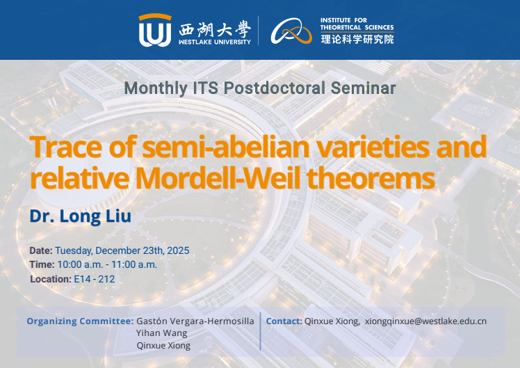 Abstract: Rational points on abelian varieties constitute a central subject in arithmetic geometry. This talk begins with the elliptic curve $y^2 = x^3 - x$ over Q as a concrete example to introduce the Mordell–Weil theorem, which asserts the finite generation of the group of rational points on an abelian variety. We then move to the function field setting, introducing the trace of an abelian variety and the Lang–Néron theorem—a relative version of the Mordell–Weil theorem. Finally, we present several generalizations of the trace construction and the Lang–Néron theorem to semi-abelian varieties and Deligne 1-motives.